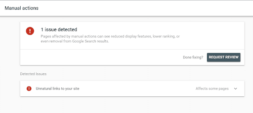 Google’s algorithm may automatically flag websites suspected of being engaged in link buying, PBN schemes, or other black hat tactics. When this occurs, a Google employee will manually inspect the site to see if there’s evidence of wrongdoing. This is known as a “manual action”.
