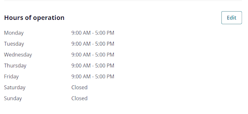 You can edit your phone number, website URL, and address on the right-hand side (simply click the appropriate category):