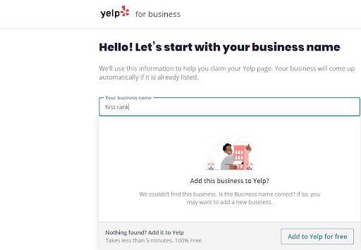 In this circumstance, you’ll simply click “Add to Yelp for free”.
